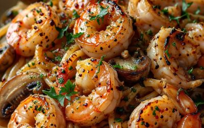 Pâtes à l'ail avec crevettes et champignons