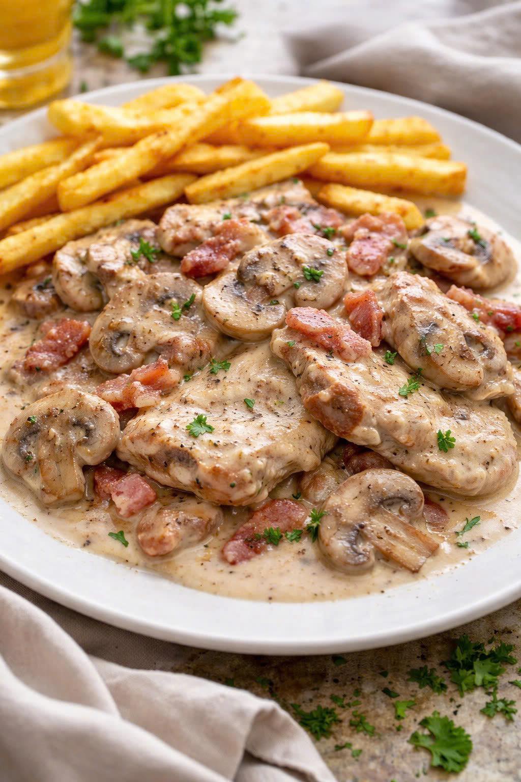 Ingrédients pour la préparation de filets de porc à la crème, au jambon et aux champignons